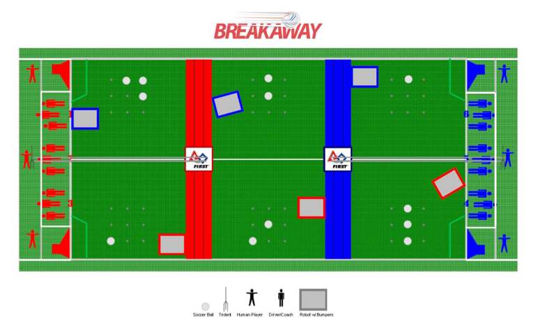 We must place the robot on the RIGHT side from the driver's view. In the far ZONE and in contact with the ALLIANCE STATION WALL and/or ramp. In the MIDFIELD and in contact with the farthest BUMP. In the near ZONE and in contact with the nearest BUMP.